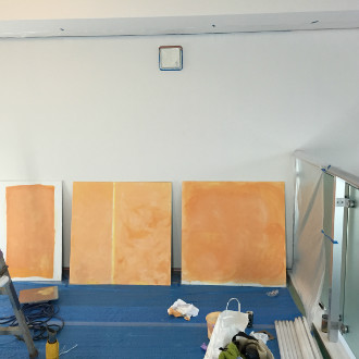 学習塾の店舗内装工事です。 クロスの上に塗ることでコスト削減出来ました。